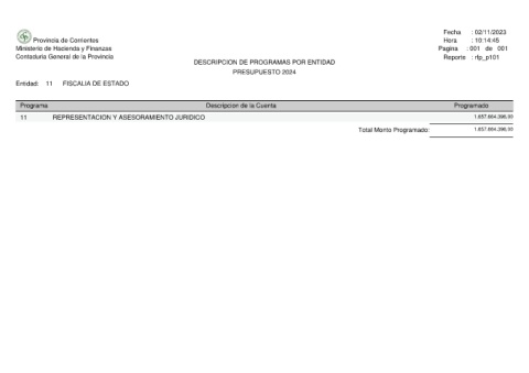 Provincia de Corrientes Ministerio de Hacienda y Finanzas Contaduria General de la Provincia FISCALIA DE ESTADO 11 Entidad: Programa REPRESENTACION Y ASESORAMIENTO JURIDICO 11