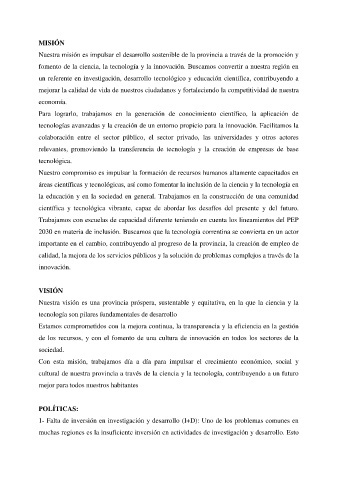 Nuestra visión es una provincia próspera, sustentable y equitativa, en la que la ciencia y la