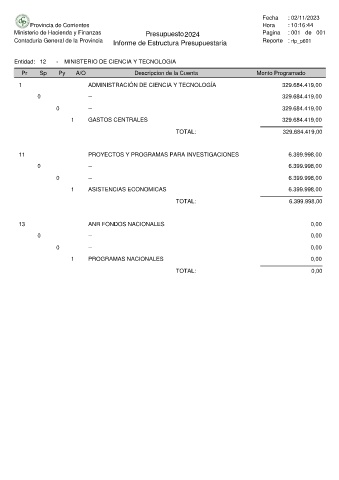 Entidad: 12 - MINISTERIO DE CIENCIA Y TECNOLOGIA