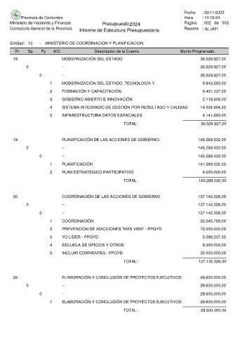 Ministerio de Hacienda y Finanzas Presupuesto 2024 Pagina : 002 de 003