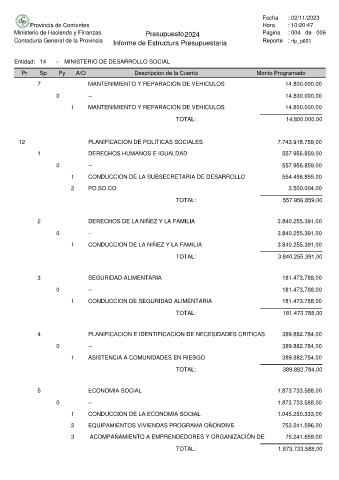 Ministerio de Hacienda y Finanzas Presupuesto 2024 Pagina : 004 de 006