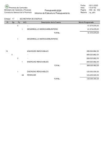 Entidad: 17 - SECRETARIA DE ENERGIA