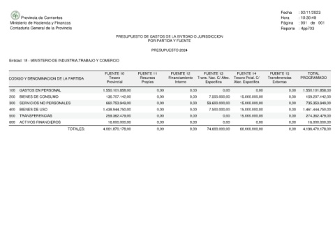 Entidad: 18 - MINISTERIO DE INDUSTRIA,TRABAJO Y COMERCIO