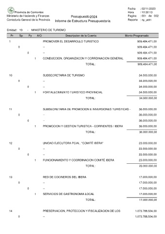 1 PROMOCION Y GESTION TURISTICA - CORRIENTES / IBERA 36.000.000,00