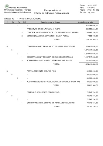Entidad: 19 - MINISTERIO DE TURISMO