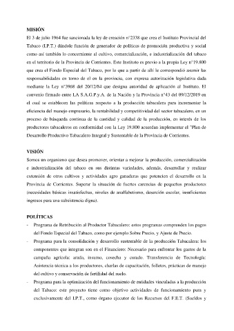 Tabaco (I.P.T.) dándole función de generador de políticas de promoción productiva y social