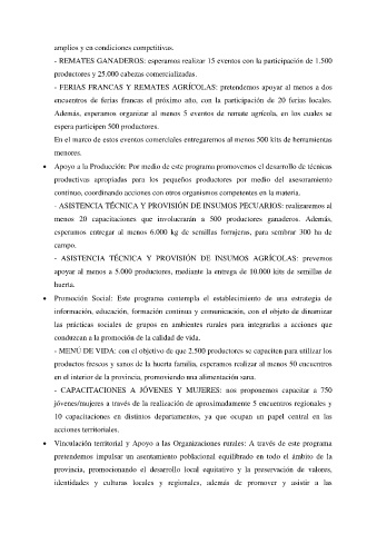 - FERIAS FRANCAS Y REMATES AGRÍCOLAS: pretendemos apoyar al menos a dos