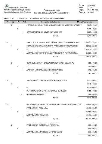 Ministerio de Hacienda y Finanzas Presupuesto 2024 Pagina : 002 de 003
