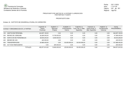 Entidad: 30 - INSTITUTO DE DESARROLLO RURAL DE CORRIENTES