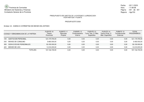 Entidad: 33 - AGENCIA CORRENTINA DE BIENES DEL ESTADO
