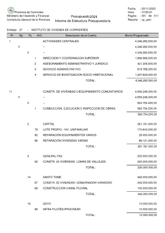 Entidad: 27 - INSTITUTO DE VIVIENDA DE CORRIENTES
