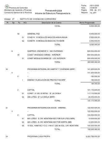 Ministerio de Hacienda y Finanzas Presupuesto 2024 Pagina : 008 de 011