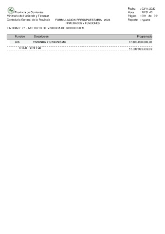 ENTIDAD: 27 - INSTITUTO DE VIVIENDA DE CORRIENTES