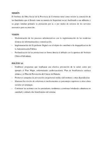 El Instituto de Obra Social de la Provincia de Corrientes tiene como misión la concreción de