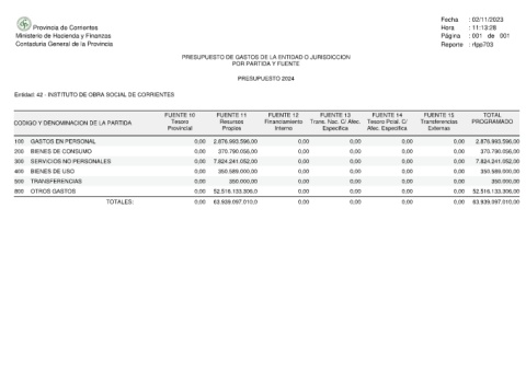 Entidad: 42 - INSTITUTO DE OBRA SOCIAL DE CORRIENTES