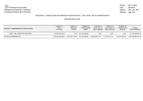 Provincia de Corrientes Ministerio de Hacienda y Finanzas Contaduria General de la Provincia CODIGO Y DENOMINACION RECURSOS 37800 - DEL GOBIERNO NACIONAL TOTALES GENERALES: