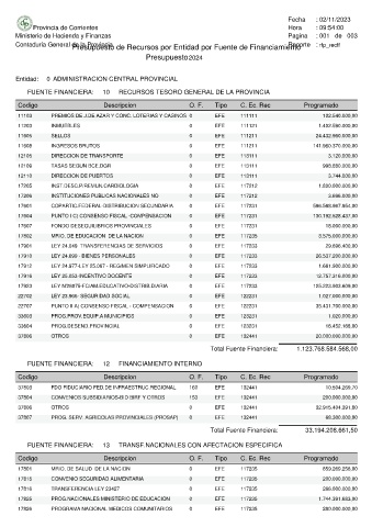 Entidad: 0 ADMINISTRACION CENTRAL PROVINCIAL