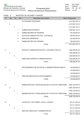 Ministerio de Hacienda y Finanzas Presupuesto 2024 Pagina : 001 de 007