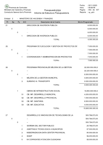 Ministerio de Hacienda y Finanzas Presupuesto 2024 Pagina : 003 de 007