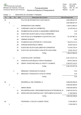 Ministerio de Hacienda y Finanzas Presupuesto 2024 Pagina : 005 de 007