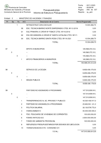 Ministerio de Hacienda y Finanzas Presupuesto 2024 Pagina : 006 de 007