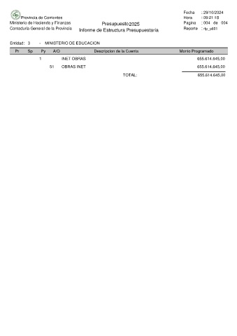 Ministerio de Hacienda y Finanzas Presupuesto 2025 Pagina : 004 de 004
