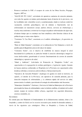 capital y el interior de la Provincia, con operativos de atención primaria, para la