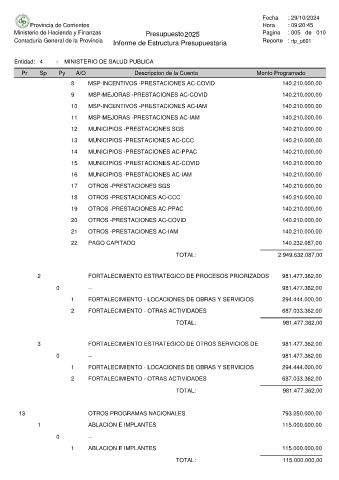 Ministerio de Hacienda y Finanzas Presupuesto 2025 Pagina : 005 de 010