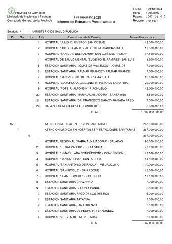 Ministerio de Hacienda y Finanzas Presupuesto 2025 Pagina : 007 de 010