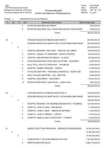 Ministerio de Hacienda y Finanzas Presupuesto 2025 Pagina : 009 de 010
