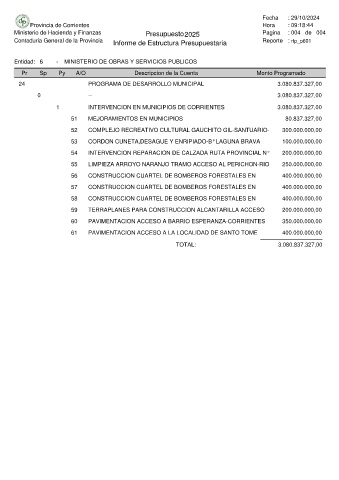 Ministerio de Hacienda y Finanzas Presupuesto 2025 Pagina : 004 de 004
