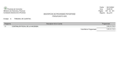 Provincia de Corrientes Ministerio de Hacienda y Finanzas Contaduria General de la Provincia TRIBUNAL DE CUENTAS 8 Entidad: Programa CONTRALOR FISCAL DE LA HACIENDA 11