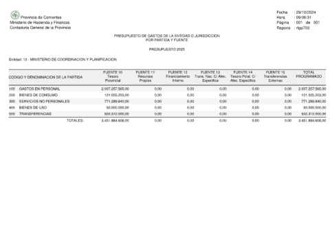 Entidad: 13 - MINISTERIO DE COORDINACION Y PLANIFICACION