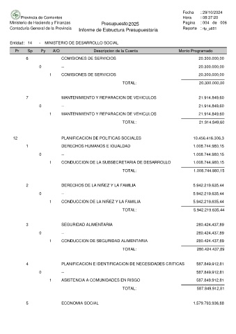 Ministerio de Hacienda y Finanzas Presupuesto 2025 Pagina : 004 de 006
