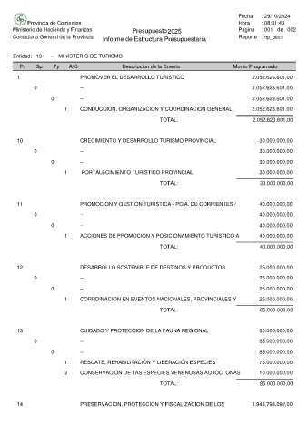 Entidad: 19 - MINISTERIO DE TURISMO
