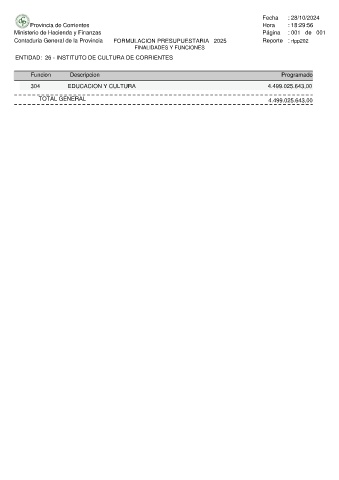 Contaduria General de la Provincia FORMULACION PRESUPUESTARIA 2025 Reporte : rfpp202