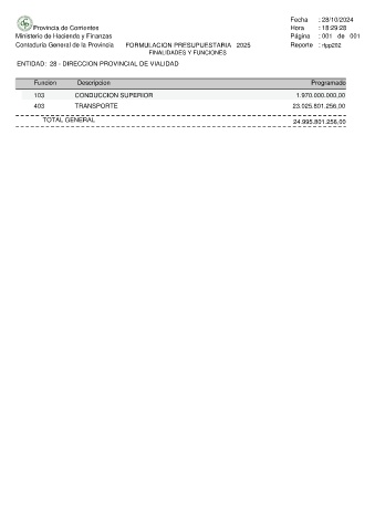 Contaduria General de la Provincia FORMULACION PRESUPUESTARIA 2025 Reporte : rfpp202