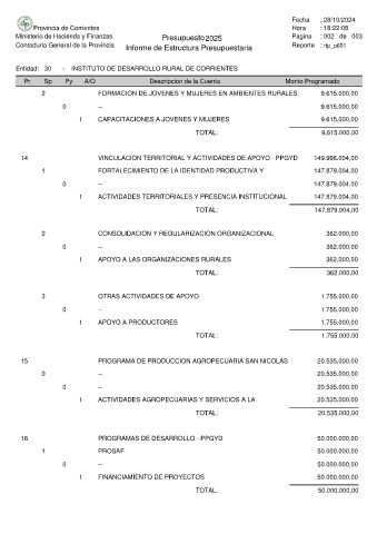 Ministerio de Hacienda y Finanzas Presupuesto 2025 Pagina : 002 de 003