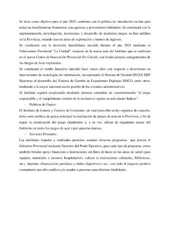 tiene como política de gastos principal la explotación de juegos de azar en la Provincia, a fin de