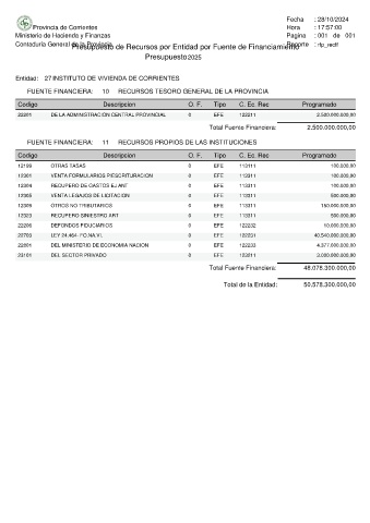Entidad: 27 INSTITUTO DE VIVIENDA DE CORRIENTES