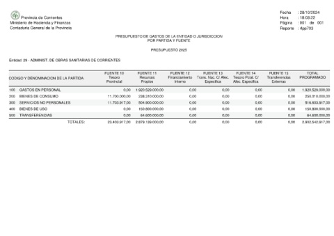Entidad: 29 - ADMINIST. DE OBRAS SANITARIAS DE CORRIENTES