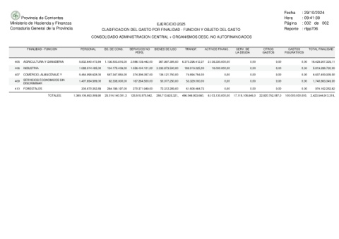 Provincia de Corrientes Ministerio de Hacienda y Finanzas Contaduria General de la Provincia FINALIDAD - FUNCION AGRICULTURA Y GANADERIA 405 INDUSTRIA 406 COMERCIO, ALMACENAJE Y 407 SERVICIOS ECONOMICOS SIN 409 DISCRIMINAR FORESTALES 410 TOTALES: