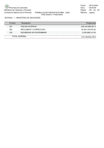 Contaduria General de la Provincia FORMULACION PRESUPUESTARIA 2025 Reporte : rfpp202