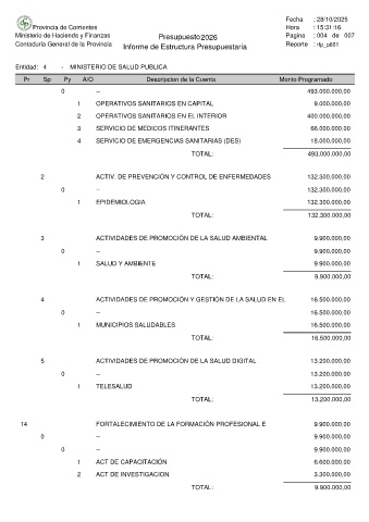 Entidad: 4 - MINISTERIO DE SALUD PUBLICA