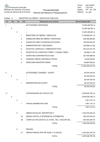Entidad: 6 - MINISTERIO DE OBRAS Y SERVICIOS PUBLICOS