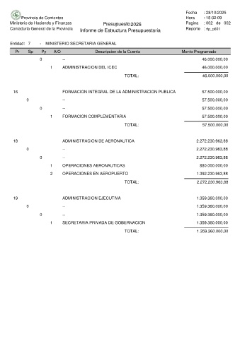 Ministerio de Hacienda y Finanzas Presupuesto 2026 Pagina : 002 de 002