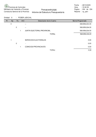 Ministerio de Hacienda y Finanzas Presupuesto 2026 Pagina : 004 de 004