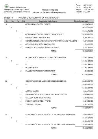 Entidad: 13 - MINISTERIO DE COORDINACION Y PLANIFICACION