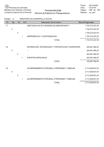 Ministerio de Hacienda y Finanzas Presupuesto 2026 Pagina : 006 de 006