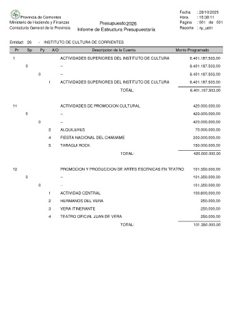Entidad: 26 - INSTITUTO DE CULTURA DE CORRIENTES